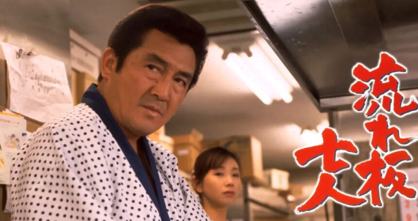 老舗の料亭の暖簾を取り返すために立ち上がった7人の流れ板たちの活躍を描いたアクション。監督は和泉聖治。牛次郎と笠太郎によるコミック『流れ板竜二』を、高田宏治が脚本化。撮影を安藤庄平が担当している。ちなみにタイトルの「流れ板」とは、おのれの料理の腕前に意地と誇りをかけて日本全国を流れ歩く渡り職人のこと。
